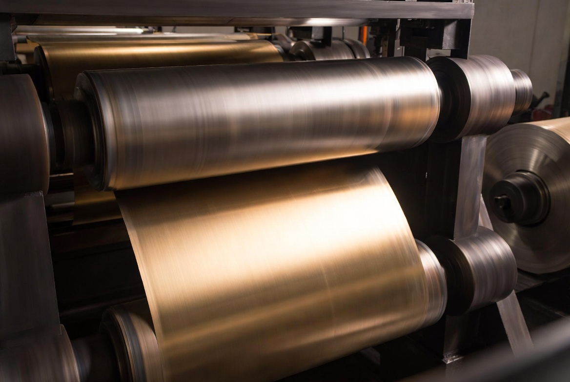 Pro Tip: Always protect surfaces during transport—H85′s beauty is in that perfect gold finish.Cymber Metal rolling mill producing H85 brass strip coils